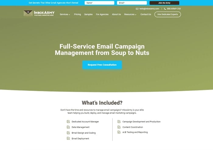 Inbox Army is an email marketing agency. This landing page is for their Campaign Management Service.