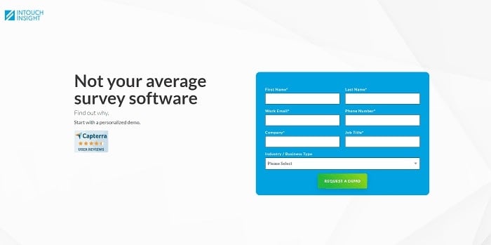 Intouch Insight sells software and services that help clients use data to create better customer experiences. This landing page aims to get visitors to sign up for a product demo.