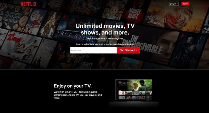 Netflix is a streaming service for movies and tv shows. This landing page aims to get visitors to sign up for a membership.