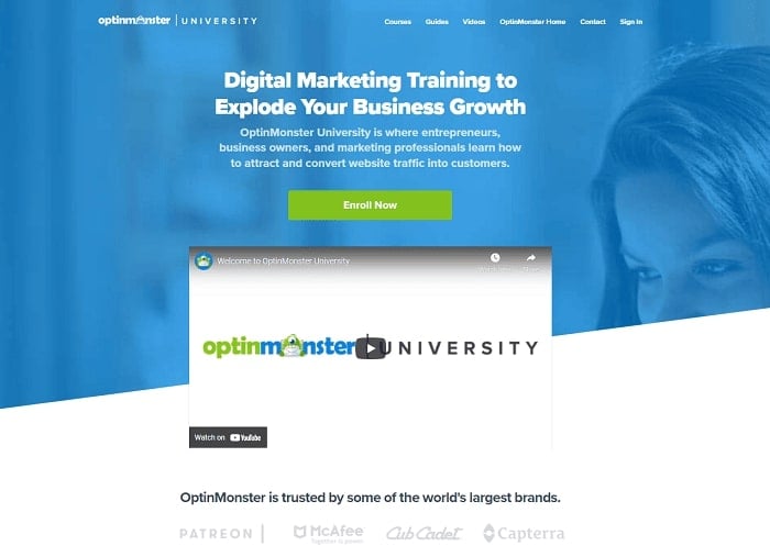 OptinMonster University is a lead generation tool for creating marketing funnels, email campaigns, and landing pages. This landing page is for OptinMonster University, their course that teaches marketers and business owners how to generate leads.
