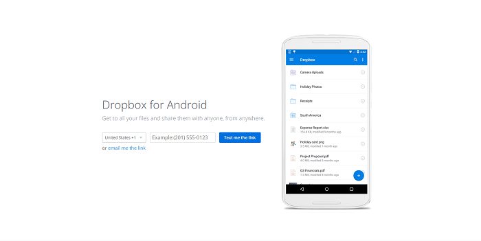 Dropbox is an app for storing and sharing files across devices and with others. This landing page aims to get visitors to download Dropbox.