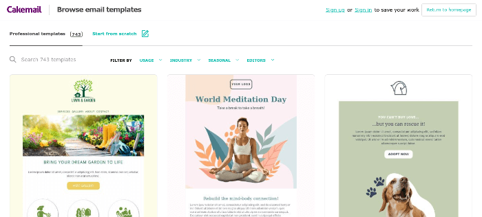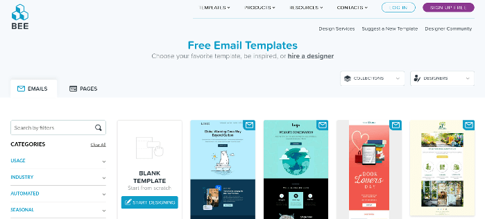 Use of the free templates doesn’t require sign-up. However, a free BEE Pro plan will grant access to extra templates and features.