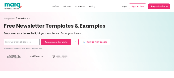 Marq, formerly Lucidpress, is a brand-templating platform that hosts 96 free newsletter templates.