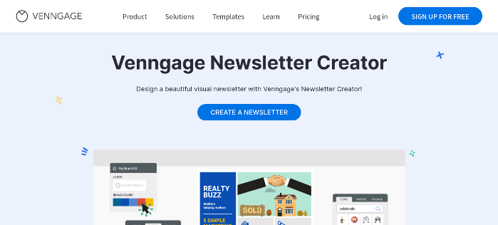 Venngage is a free infographic maker with over 2,000 graphics and icons and millions of royalty-free stock images. It also has a newsletter creator tool and various newsletter templates.