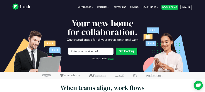 Flock’s team communication and collaboration tool is a direct Slack competitor and a top alternative.
