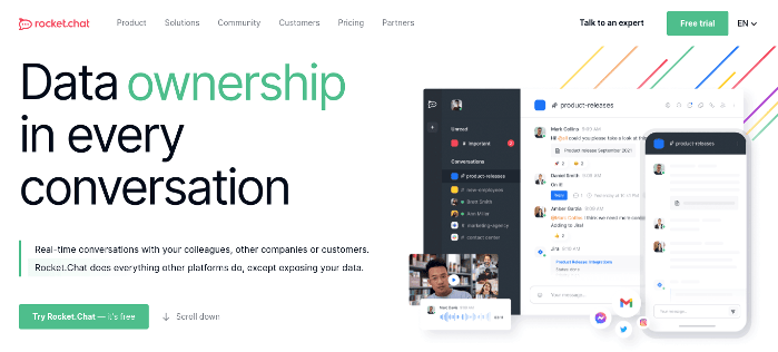 Rocket Chat is an open-source team collaboration solution that meets a wide array of use cases. It is among the very few tools out there that can effortlessly handle both team collaboration and omnichannel support.