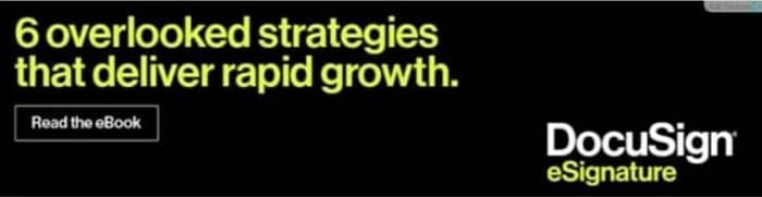 DocuSign knows its target audience isn’t going to click over and sign up right away for their services, so their banner ad is offering valuable information to its potential customers. The headline and contrasting colors will get the readers’ attention. Once they click over, their easy yes offer could seal the deal (or they can retarget them with new more irresistible offers).