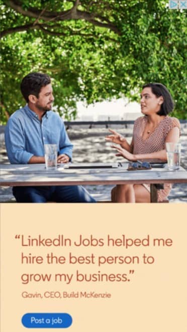 Linkedin knows how tiresome the hiring process can be for employers. Adding a testimonial right in the ad helps convince more businesses to click over for more information.