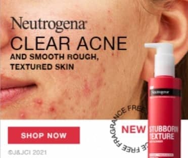 This ad places acne sufferers’ worst nightmare front and center, right next to the perfectly-named Stubborn Texture Acne Cleanser. Their target audience is naturally compelled to click on the ad.