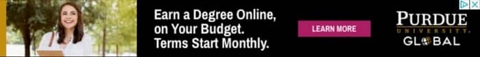 The bright image and text with contrasting dark colors help draw your eyes. Purdue University takes on their biggest sales objection head-on, they give you more reasons to keep reading and get curious about it.